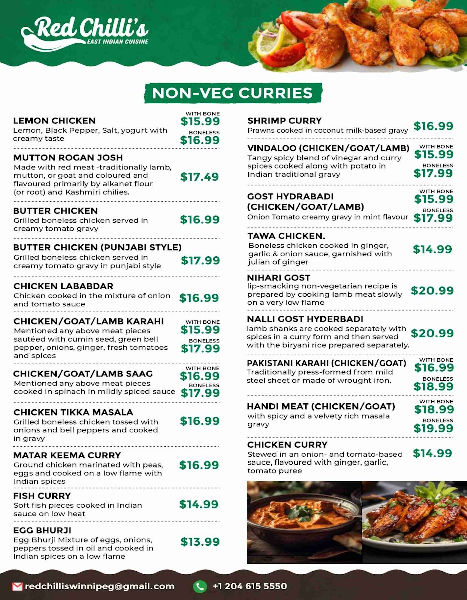 Welcome to Red Chillis Selkirk, a hidden gem nestled at 185 Main St, Selkirk, MB. This East Indian restaurant is rapidly gaining a loyal following thanks to its commitment to quality and authentic flavors. The menu features a delightful array of dishes, from mouthwatering chicken tikka sizzlers and palak paneer to the irresistibly spicy lamb vindaloo and creamy butter chicken. Diners rave about the generous portions and reasonable prices, making each meal feel like a culinary steal.